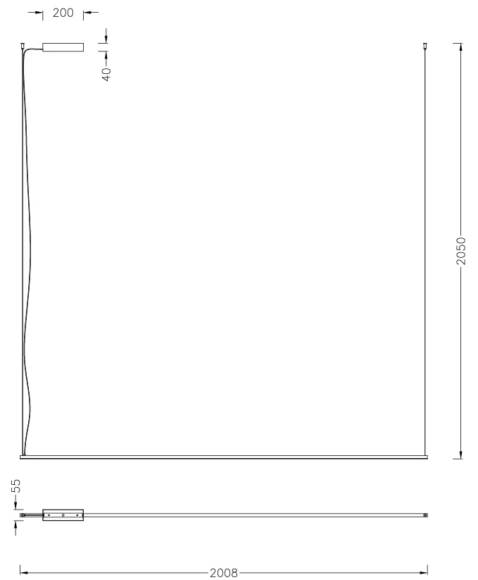 L: 200 cm H: max 205 cm W: 5,5 cm